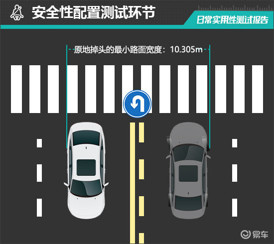 车辆在日常使用中,经常会遇到转弯或者掉头的情况,这个时候车辆的转向灵活性就显得非常重要了。了解爱车在原地掉头时所需的路面宽度,能做到心中有数,从而避免剐蹭等危险情况的发生。经过实测,评测车原地掉头的最小路面宽度为10.305m,处于同级别中游水平。