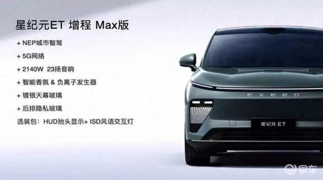 星途星纪元 ET增程Max版在配置方面进行了全面升级,新增了包括NEP城市智驾、HUD抬头显示、2140W的23扬音响等在内的多项高科技配置。