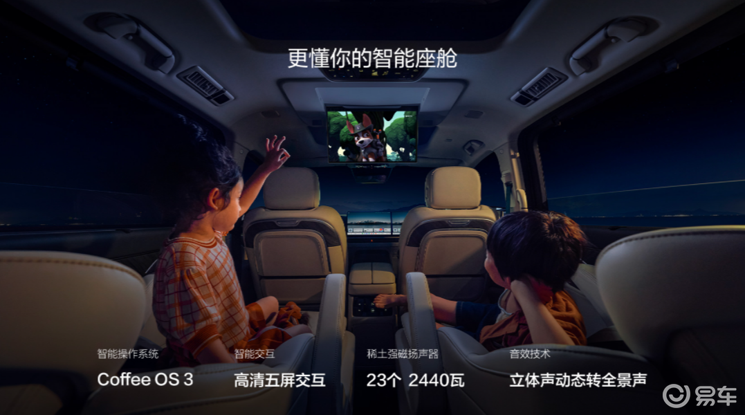 在智能化方面,高山7也做了不少努力。它是30万元以内中大型MPV中,唯一标配激光雷达和后排娱乐屏的车型。搭载的Coffee Pilot Ultra智能驾驶系统,支持从车位到车位的全场景智能辅助驾驶,并可以识别超过200种车位类型,帮助用户轻松完成泊车。此外,车辆还配备了23个扬声器的高品质音响、5D观影模式,以及12.5升容量的智能冷暖冰箱,将车内空间打造成一个兼具娱乐与生活功能的移动生活舱。