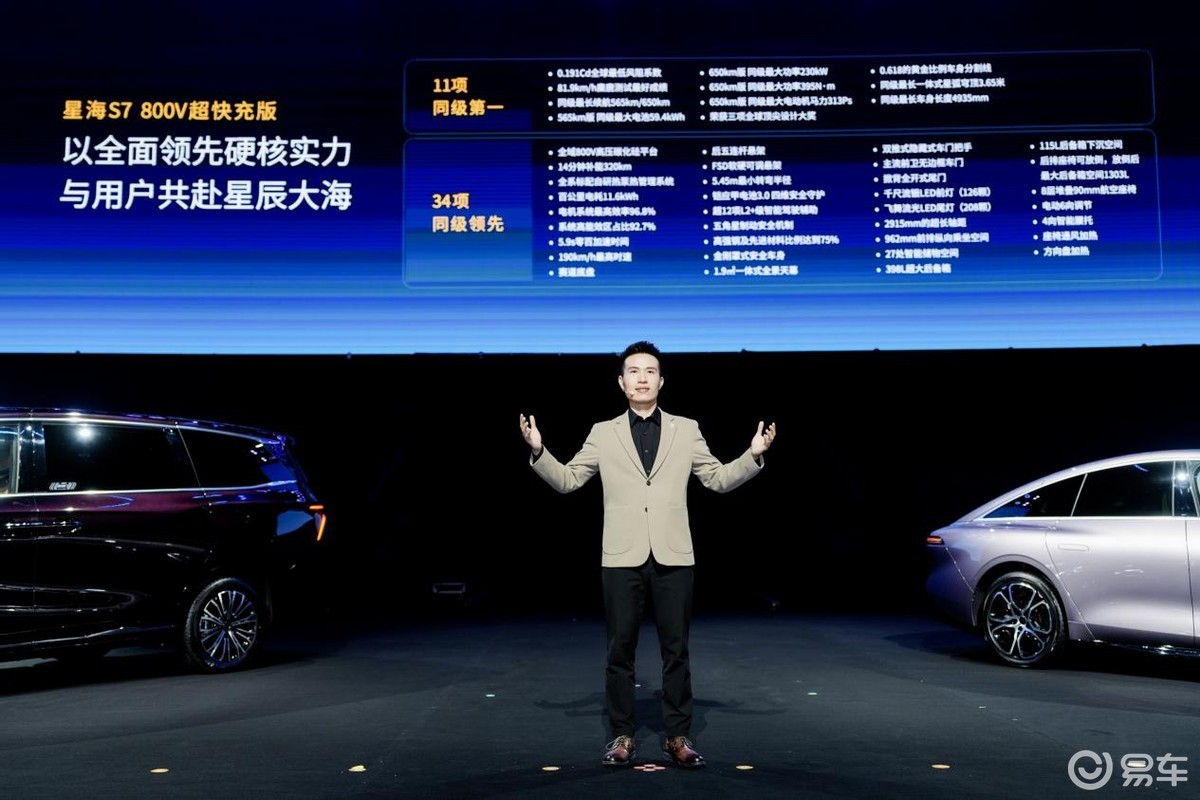 发布会上,品牌公布了星海S7 800V超快充版的官方售价与购车权益。新车共推出四个版本,指导价11.99万—14.99万元,限时置换价10.59万元起。权益涵盖FSD逍遥悬架、原厂遮阳帘与尾翼,以及至高1.4万元置换补贴或10万元5年免息金融方案,总价值达4.5万元,有效点燃现场购车热情。