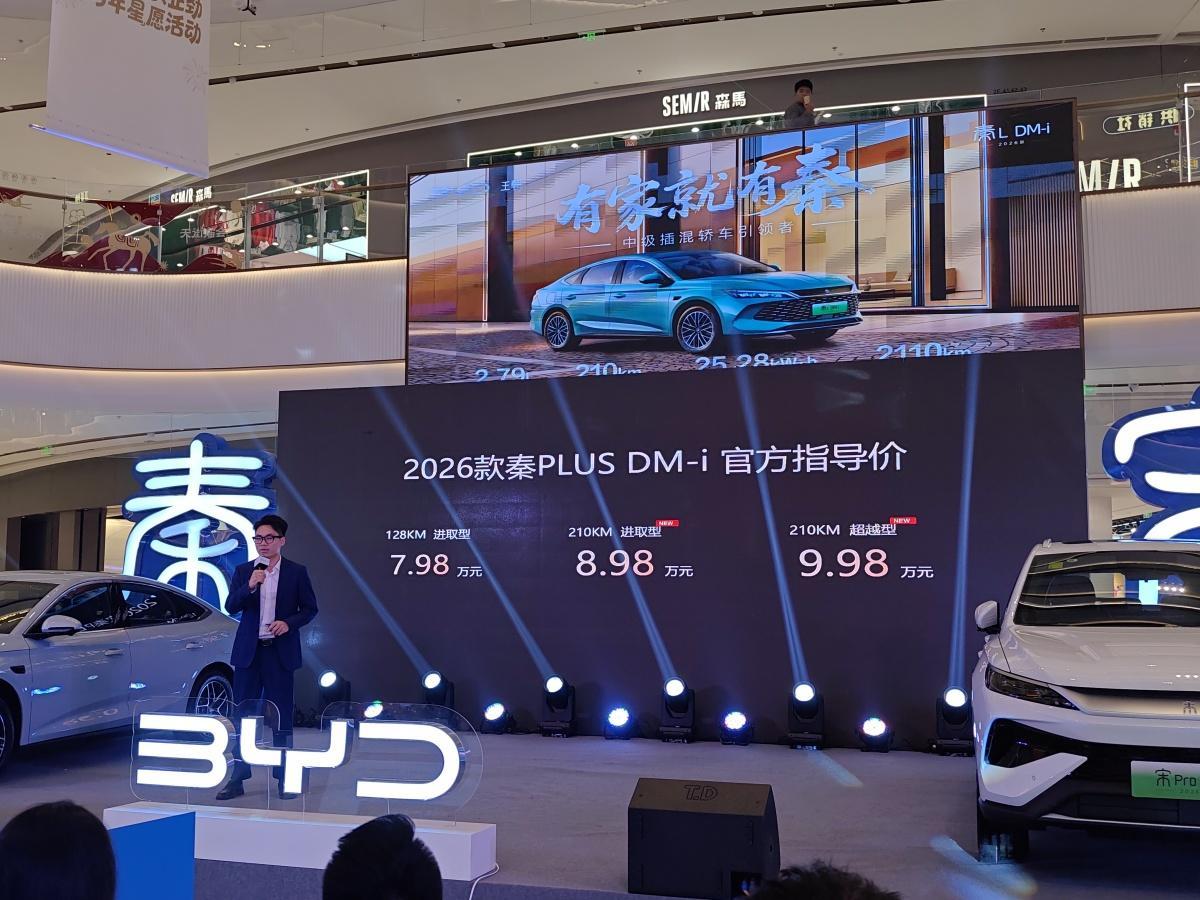 现场公布的售价与上市权益将氛围推向高潮。比亚迪以极具诚意的定价践行“技术平权”承诺:秦家族以7.98万元起的亲民价格入市,其中秦PLUS DM-i限时起售价下探至8.98万元,将纯电续航超200公里的混动车型带入8万元价格区间;秦L DM-i四款车型限时优享价覆盖9.28万元-12.28万元,新增配置版本性价比显著提升;宋Pro DM-i限时补贴后起售价低至9.98万元,售价区间覆盖9.98万元-12.78万元,精准覆盖不同家庭用户需求。同时,新车在设计与配置上持续优化,秦PLUS DM-i内饰换装集成式豪华电子怀挡,秦L DM-i配备一体式智能冷暖冰箱与W-HUD抬头显示系统,宋Pro DM-i新增全景天窗遮阳帘等实用配置,全方位提升驾乘体验。