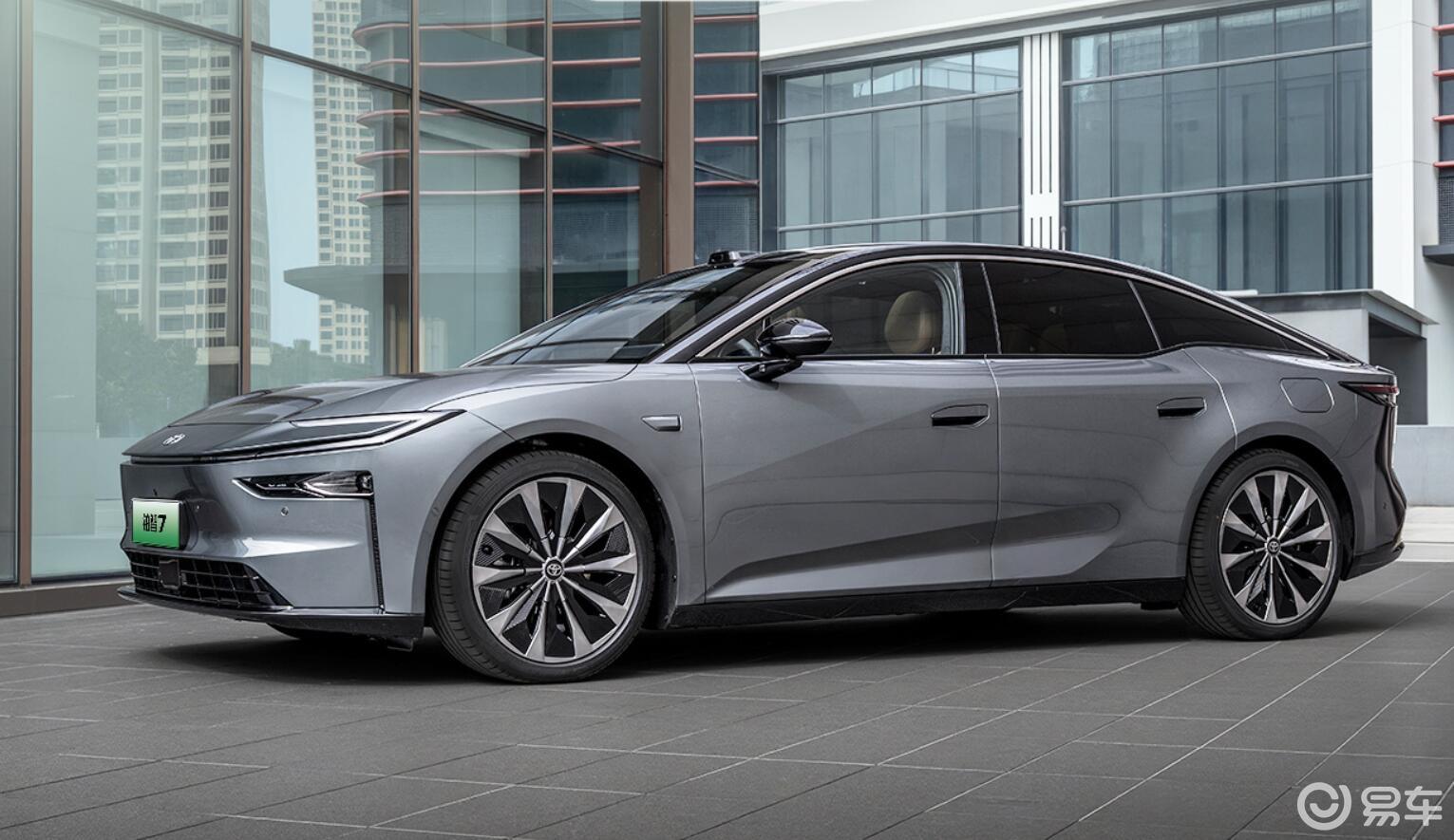 广汽丰田铂智7将于3月上市,新车定位中大型纯电轿车,设计风格很大胆,闭合式前格栅搭配C型贯穿日行灯,下部大灯与导流槽组合在一起。新车采用全新半隐藏式门把手,还有大尺寸轮圈,很有运动感。