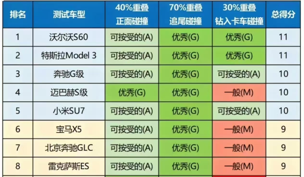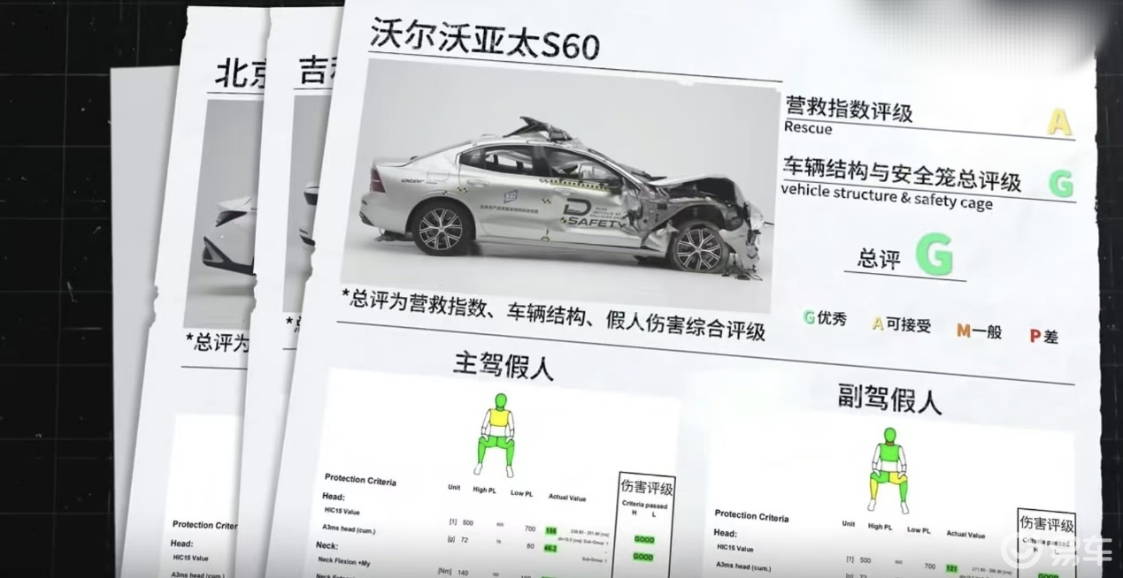 相比之下,宝马3系在类似测试中表现中规中矩,尤其是在车身强度、假人保护等关键数据上,与S60存在明显差距。