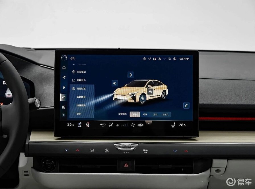 内饰方面,实拍车型未配备副驾驶娱乐屏,推测为入门配置版本。配置上涵盖主驾座椅记忆、前排座椅加热/通风、电动调节方向盘、方向盘加热、L2级智能驾驶辅助系统、HUD抬头显示、前排无线充电及小尺寸天窗等功能。