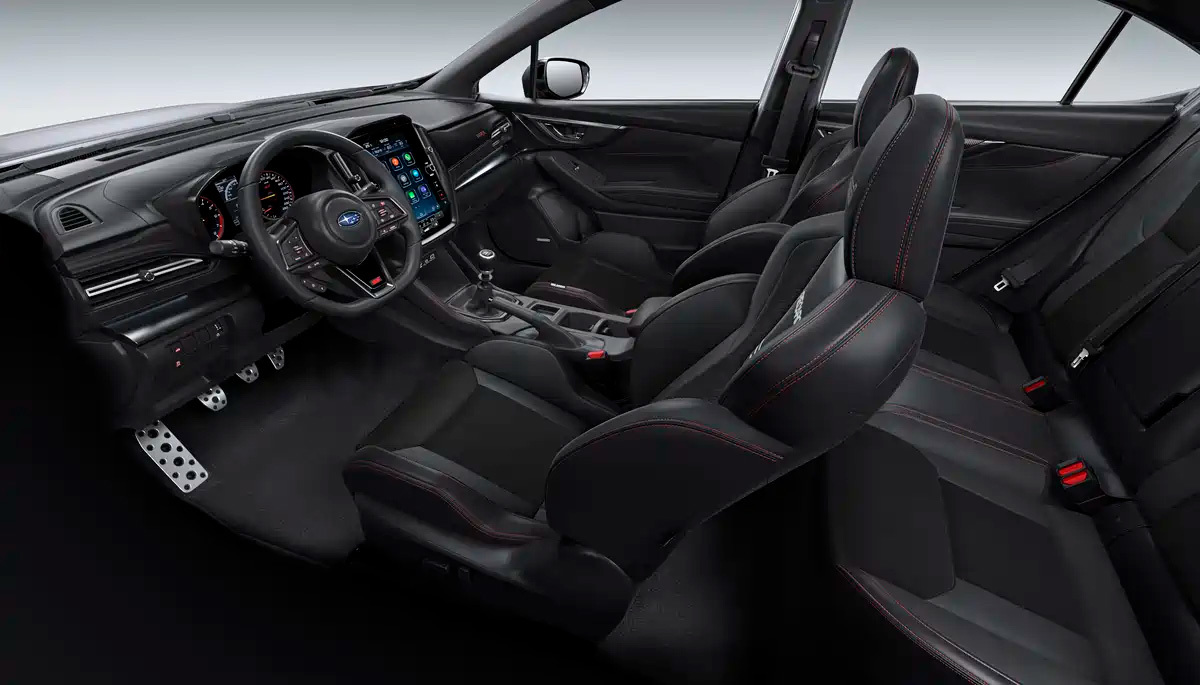 进入车内,WRX tS 的座舱以 “驾驶者为中心” 构建,运动氛围与日常实用性兼顾。前排 RECARO 桶形座椅是点睛之笔,表面采用 Ultrasuede 翻毛皮材质包裹,触感细腻且防滑性能出色,激烈驾驶时能牢牢固定身体姿态,同时座椅配备加热功能与 STI 专属刺绣标识,兼顾冬季舒适性与身份辨识度。