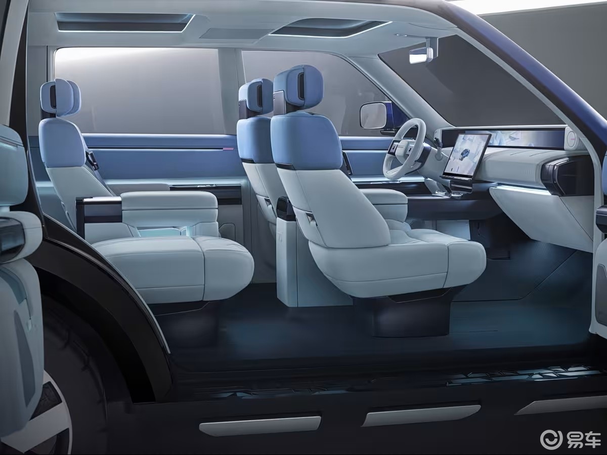 概念车采用了对开门的开启方式,预计正式量产车型可能不会采用,毕竟是概念车,连个B柱都没有。至于车内空间,后排腿部空间还算宽敞,而且后排地板十分平整。