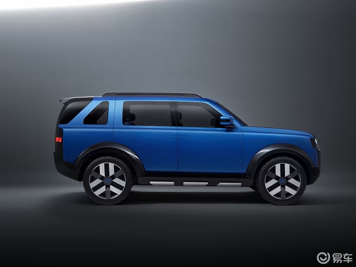 车侧部分,整体以平直线条为主,车身姿态很高,谈不上好看,也谈不上难看。