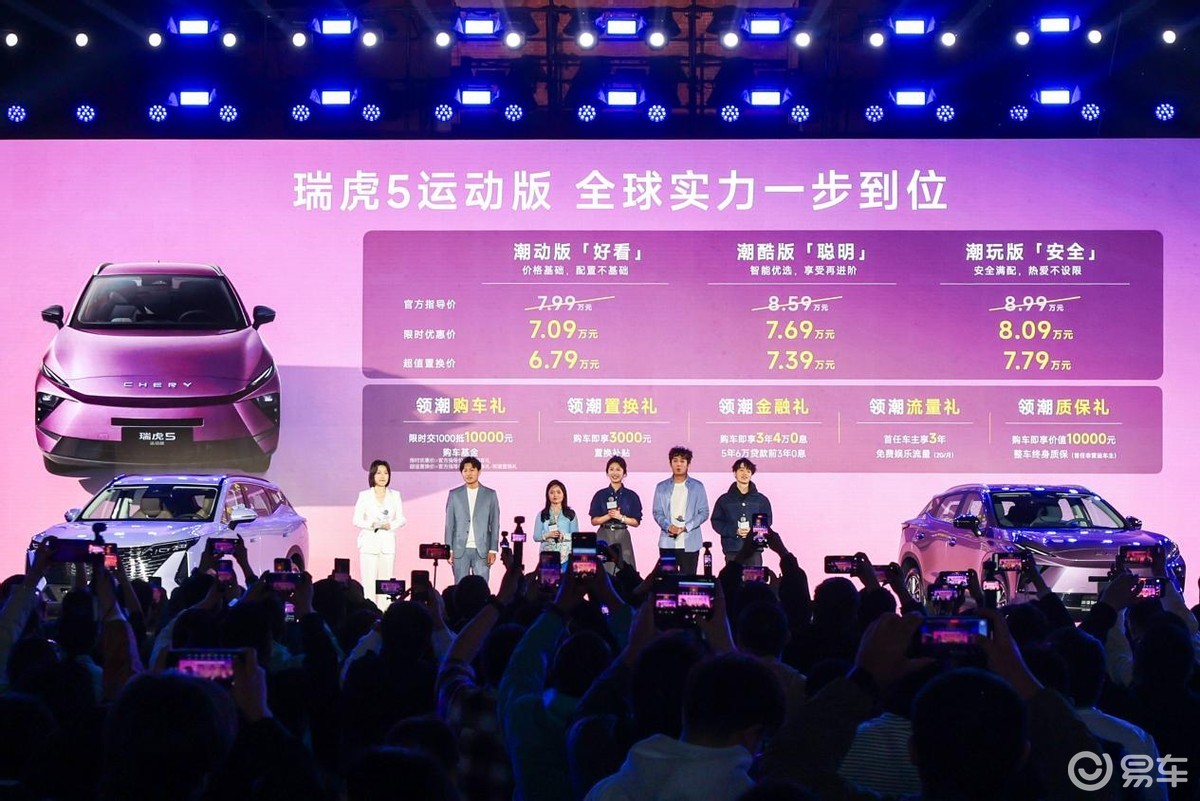 不仅如此,奇瑞瑞虎5运动版更同步推出诚意十足的“上市惊喜五重礼”:领潮购车礼,限时交1000元抵10000元购车基金,现金优惠价7.09万元起,相当于直接优惠9000元现金;领潮置换礼,购车即享3000元置换补贴;领潮金融礼,提供3年4万0息或5年6万贷款前3年0息的灵活方案;领潮流量礼,首任车主享3年免费娱乐流量(2G/月);领潮质保礼,购车即享价值10000元的整车终身质保(首任非营运车主)。在官方指导价(7.99万元-8.99万元)基础上至多可享12000元优惠,多重实打实的礼遇进一步降低了拥有门槛,让每一位年轻人都能轻松拥有一台集颜值、智能、安全于一身的全球精品SUV,不负热爱,不负期待。