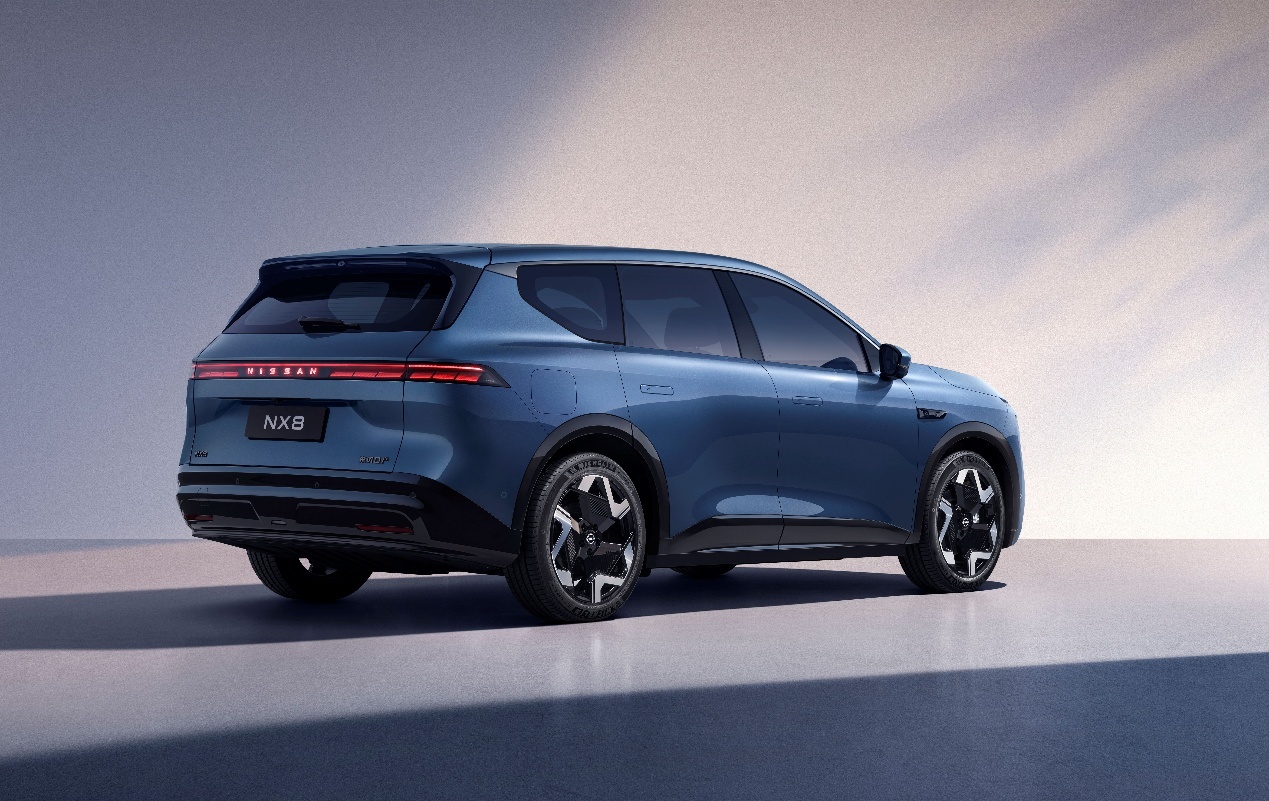 外观上,封闭中网、星环灯组、分体大灯、发光logo的组合NX8依旧是日产标志性的V-Motion风格,在明确的电动车元素之下NX8这台车保留了独属于日产自己的调性,避免了现在千篇一律的审美疲劳。侧面主打简介设计,拥有无框车门和隐藏水切。整车长4870毫米,轴距2917毫米。车尾采用贯穿灯组设计,内置2064颗OLED灯组组成的量子光幕尾灯。