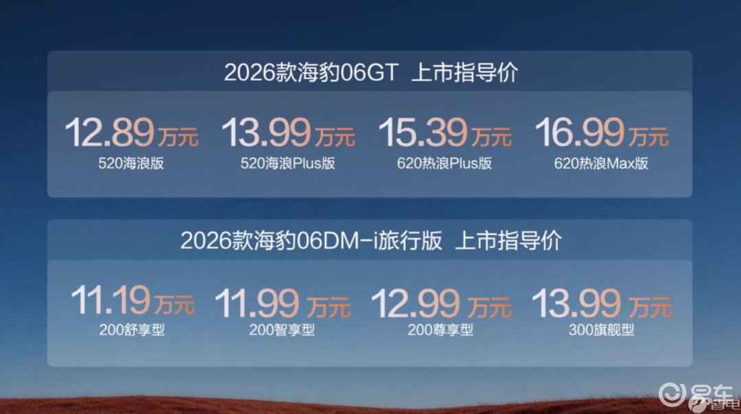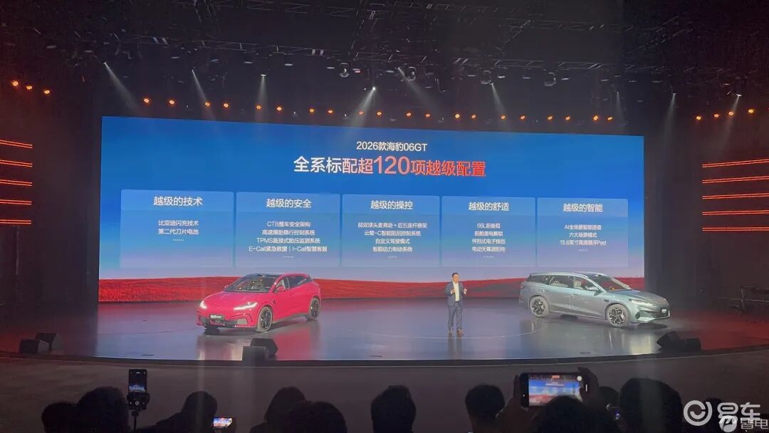 此次2026款海豹06GT不仅续航补能双重进阶,更在驾控、智能、颜值、舒适、安全等全面焕新,加上超120项全系标配。