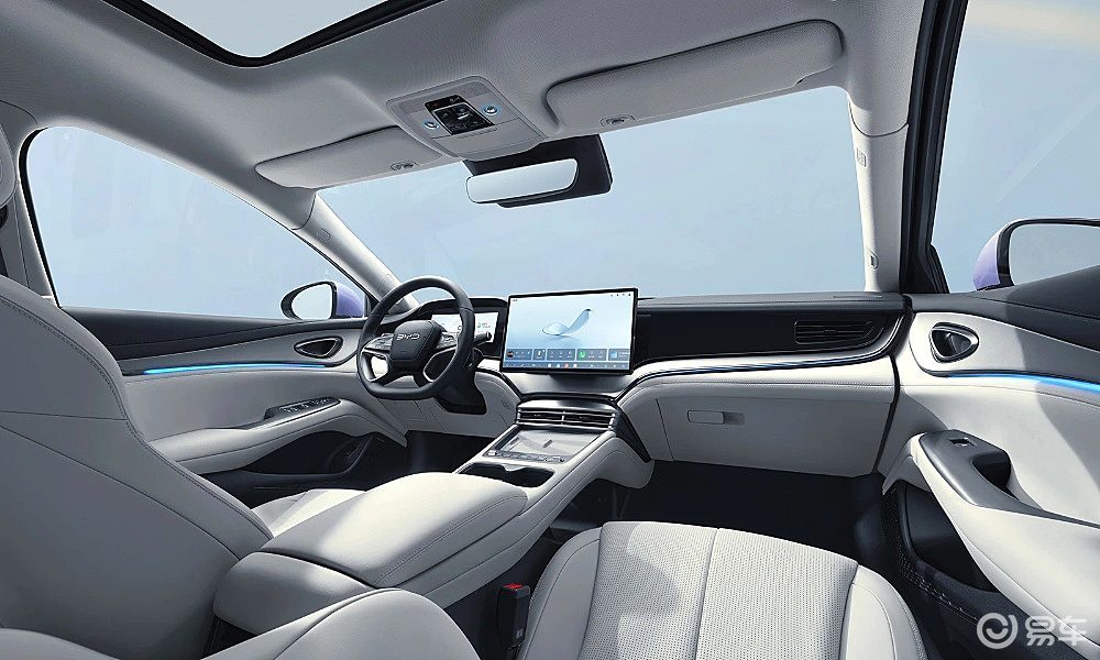 智能座舱方面,海豹07 EV搭载DiLink150智能座舱系统,内置D100芯片,支持5G速联、四音区全场景语音识别、One ID人脸识别及NFC无感解锁。