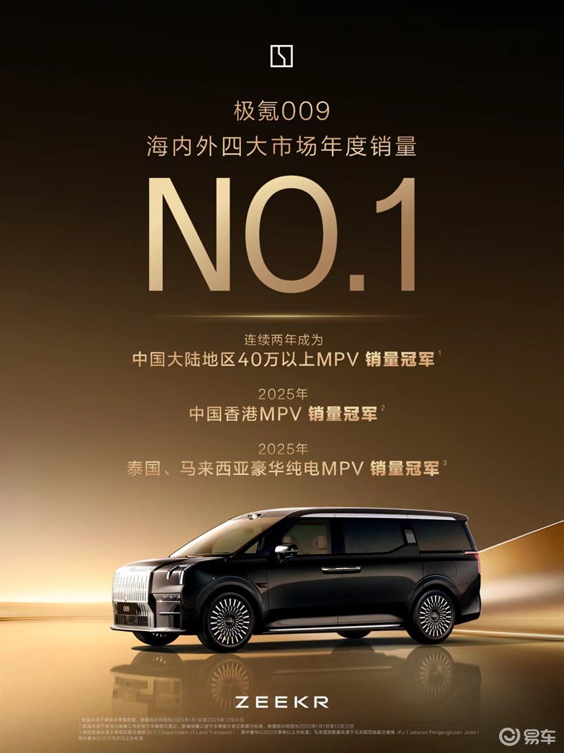 市场的热烈反馈,印证了这款车型的开创性价值。数据显示,极氪009已连续两年夺得中国40万元以上MPV年度销量冠军,并在2025年斩获香港MPV销量冠军,同时拿下泰国、马来西亚豪华纯电MPV销量冠军,累计获得超6万高端用户认可。从品类开创者到市场引领者,极氪009不仅改写了豪华MPV的竞争格局,也让中国品牌在这一长期被外资垄断的细分领域站稳了脚跟。
