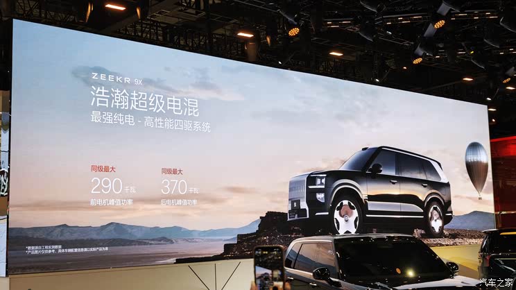 动力方面,新车搭载极氪超级电混技术,采用900V高压平台,2.0T的超混发动机,其具备205千瓦的最大功率,热效率达到46%,CLTC工况下的纯电续航为380公里,百公里加速达到3秒级,最高时速可达240km/h;其纯电版的前、后电机的功率分别是290和370千瓦。此外它具备6C的充电倍率,20-80%的充电时间仅为9分钟,另外它还具备48V主动电子防倾杆,加上它的双腔闭式空气悬架和双阀CCD电磁减振系统,空悬最大可以升高110mm,使得最大离地间隙达到288mm,让它拥有更好的过弯及通过表现。