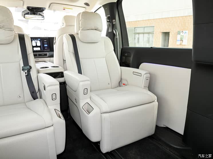 内饰也全面升级,引入全新的贯穿式环形屏幕,同时,中控区域还有一个独立控制屏,下部保留快捷控制按键,并使用电子按键排挡控制。新车座椅采用2+2+3的座椅布局,第二排也提供中央扶手区域,有独立的控制区,后排两个座椅有独立的屏幕。7个座位皆可电动调节。