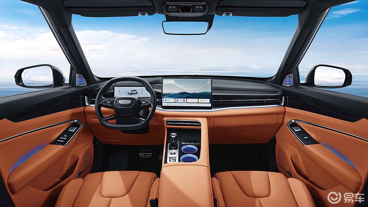 内饰方面,吉利博越搭载一款14.6英寸横向悬浮式中控屏以及10.2英寸液晶仪表盘,形成科技感十足的双屏布局。