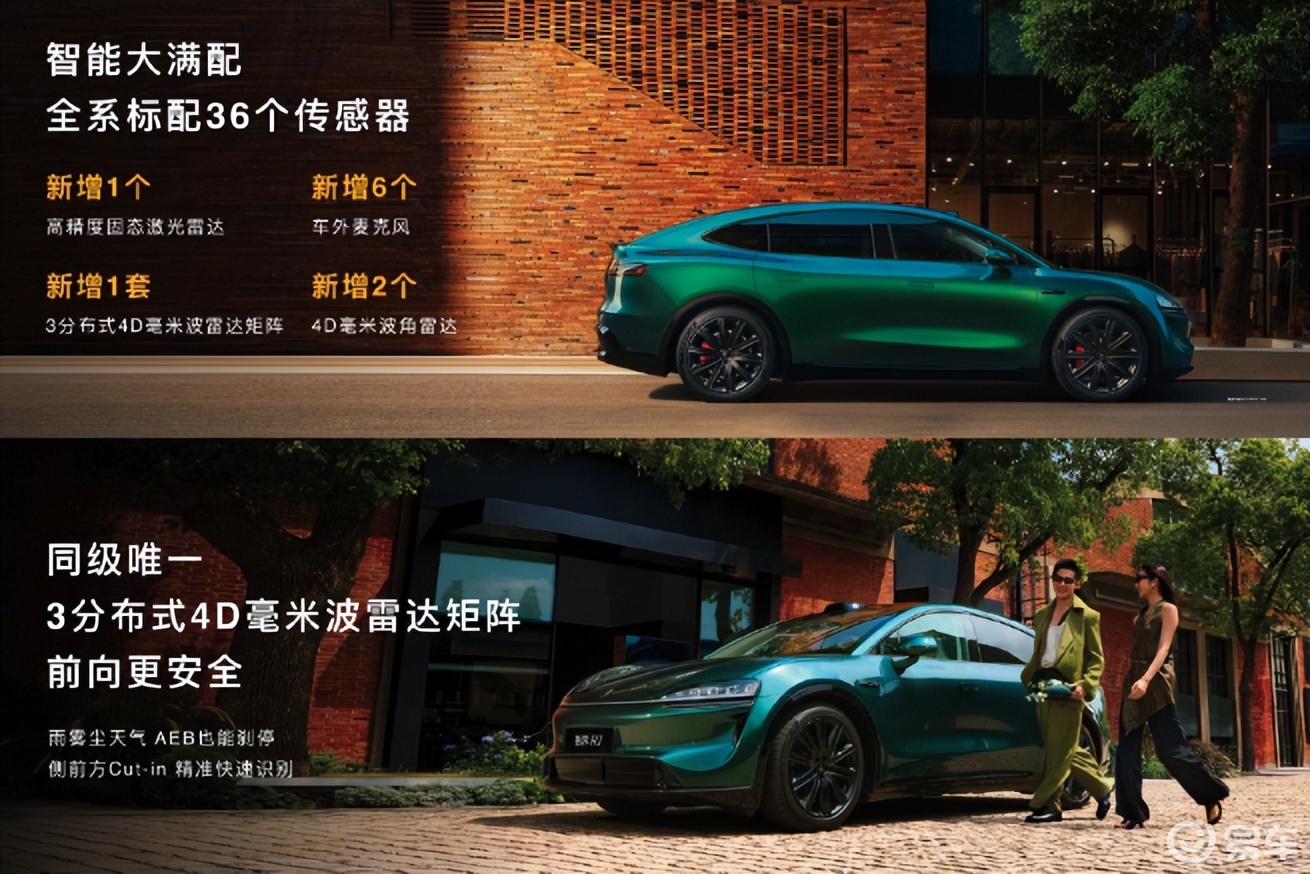 搭载 HUAWEI ADS 4 ,标配 36 个传感器,相比上一代新增 1 个高精度固态激光雷达,新增 6 个车外麦克风。