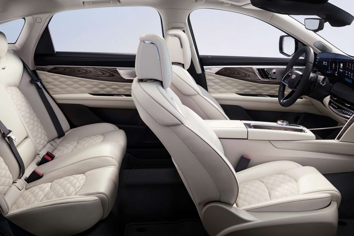 新CT6内饰采用源自北美天然牧场的Fine Nappa半苯胺真皮包裹,经轻涂饰工艺留存真皮本真的沉醉光泽与细腻肌理,更嵌入凯迪拉克经典“V”形符号菱形格纹,让匠心工艺在触感与视觉中双重呈现。甄选天然白栓木饰板,自带温润自然的触感与高密度质感;高级拉丝真铝饰条历经多道精密工序,哑光质感与细腻纹理交织,在光影流转间透出金属独有的高级格调。所有材质均经过自然环境严苛考验,耐得住时光淬炼,始终保持卓越品质。